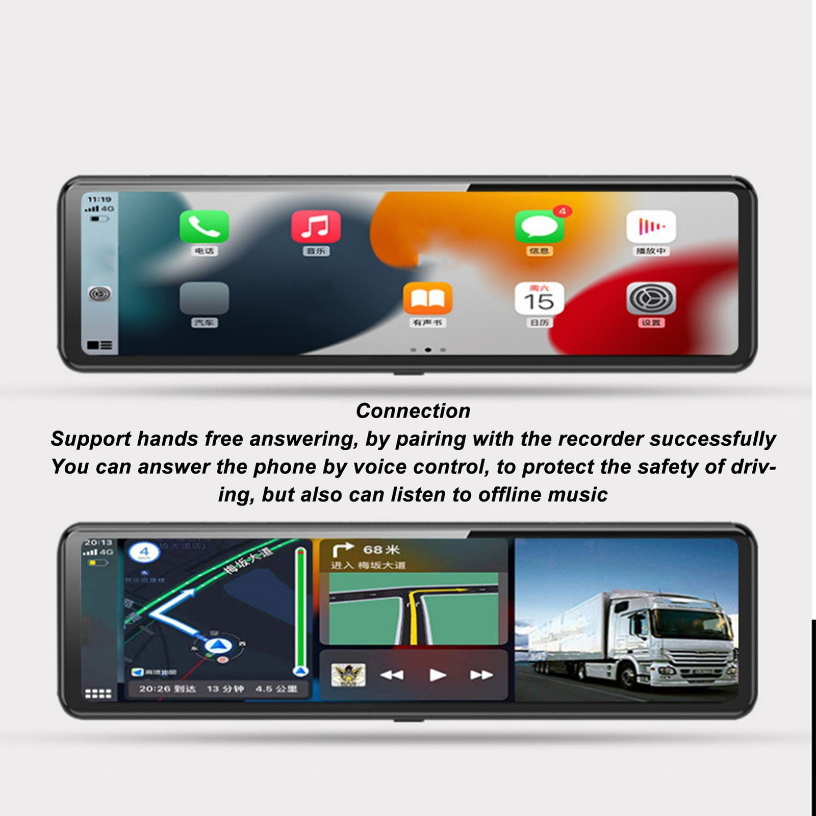 10.26In Mirror Dash Cam Bt5.0 Hd Night 3 Recorded Video Front 2.5K AM