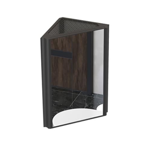 Corner Bathroom Mirror Cabinet,Triangle Locker Wall Cabinet,Wall Mounted Single Door Design,Aluminum Alloy Frame HD Mirror,for Small Space(Black)
