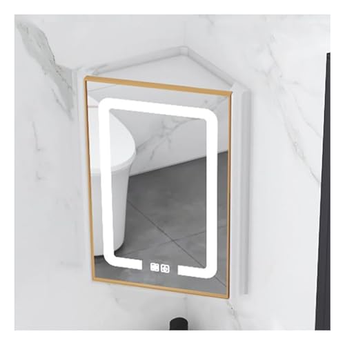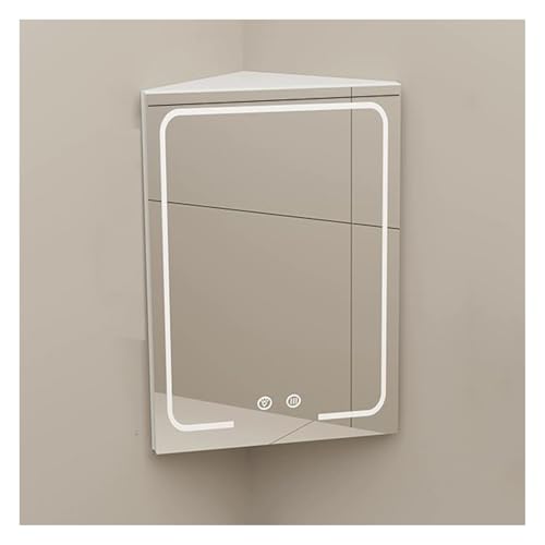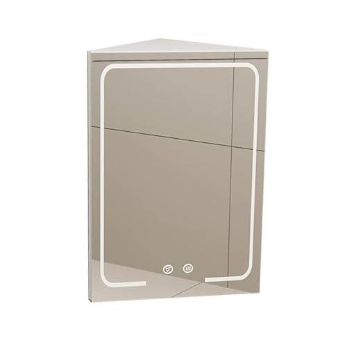 Triangle Locker Wall Cabinet,Corner Mirror Cabinet with Light,Single Door 2 Shelf Storage,Woodn Frame HD Mirror,for Bathroom Bedroom Small Space(Color1)