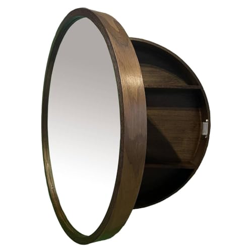Generisch Round Wall Mounted Wooden Bathroom Mirror Cabinet with 3 Shelves Space Saving Storage Solution for Small Bathrooms (Brown, 50cm)