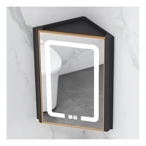 Triangle Locker Wall Cabinet,Corner Mirror Cabinet with Light,Single Door 2 Shelf Storage,Woodn Frame HD Mirror,for Bathroom Bedroom Small Space(Black)