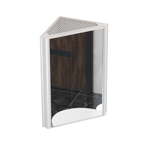 BZJPRFC Corner Cabinet with Mirror,Triangle Locker Wall Cabinet,Hanging 2 Shelf Storaget,PVC Frame HD Silver Mirror,Hollow Design,for Small Space Bathroom(Color1)