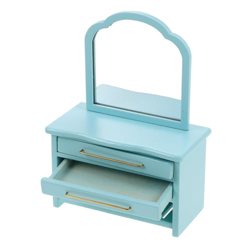 TOBBOMEY Scale Blue Wood Mirror Cabinet Bathroom Accessory Small Dressing Table Model for Creative Play and Display
