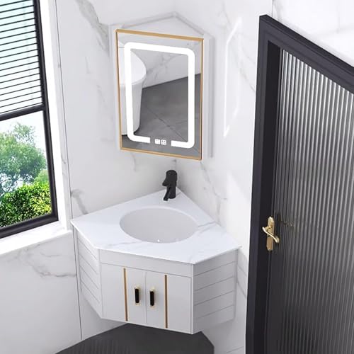GUAWJRZDP Bathroom Sink, Corner Ceramic Sink, Corner Bathroom Vanity, Wall Mounted Bathroom Sink, Corner Sink with Mirror Cabinet, Modern Bathroom Storage Cabinet, for Small Space(White)