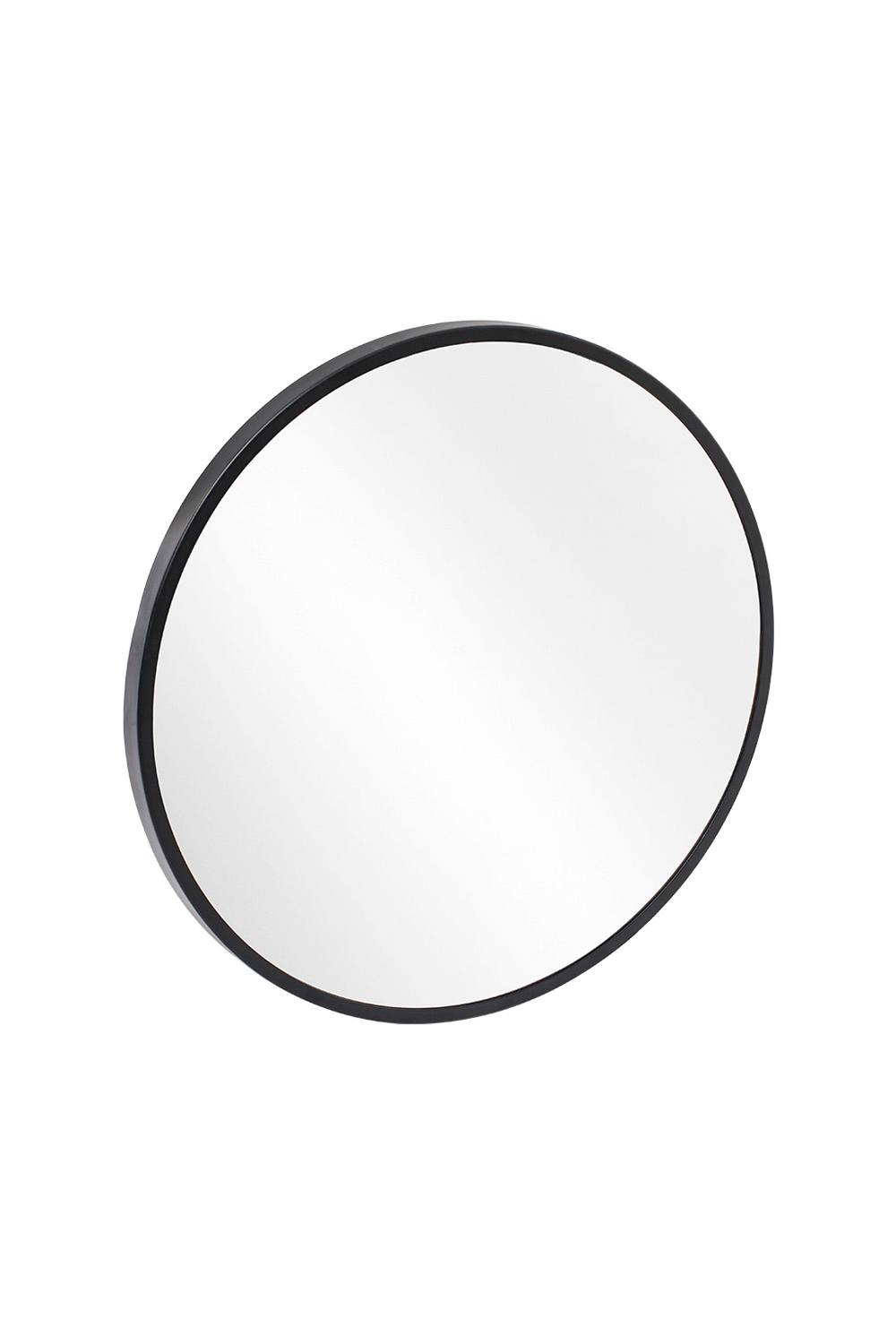Living and Home Modern Round Wall Mirror with Metal Frame Minimalist Decorative Mirror for Living Room, Bedroom in Black | Size: Medium