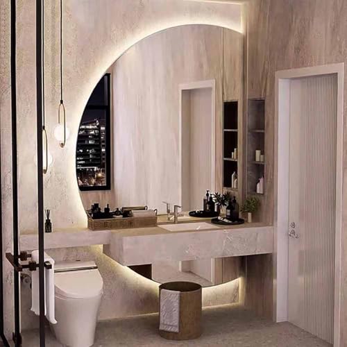 XIAKUS Smart Luminous Bathroom Mirror, Wall-Mounted Makeup Mirror with LED Light, Defog, Dimmable, Half-moon/Semicircular Frameless Hallway Mirror(Right Cut,51.2"x35.4")
