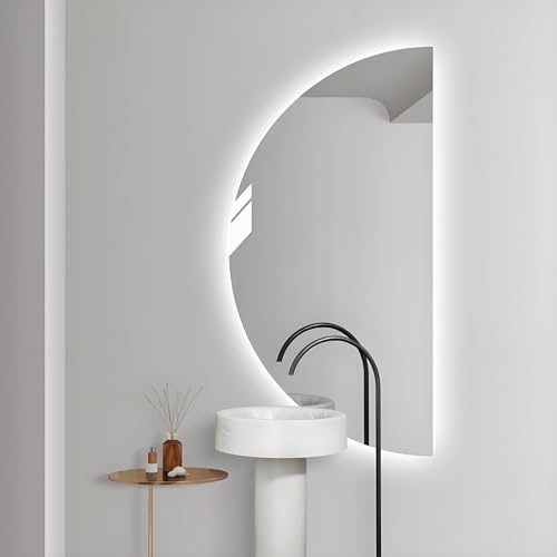 Mirocrafta Half Moon Backlit LED Lighting Bathroom Mirror, Smart Vanity Mirror, Irregular Wall Mirror, for Bedroom, Living Room, Bathroom, Entrance(Right Cut,100x50cm)