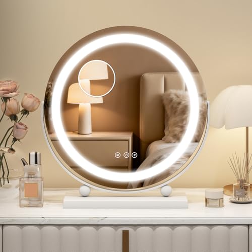 Vanity Mirror with Lights, Hollywood Mirror with 3 Color Light, 360 Rotation wi