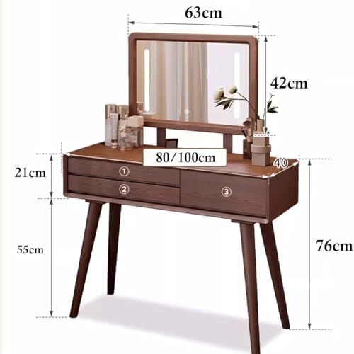 JUSKAQZYI dressing table Vanity Desk with Mirror and Lights Modern Dressing Table with Drawers for Bedroom Walnut Vanity Table 31inch vanity table(100cm)