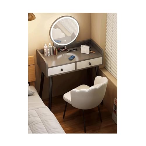 JUSKAQZYI dressing table Vanity Desk with Round Mirror and Lights Dressing Table Set with Drawers Makeup Desk for Bedroom(Gray White) vanity table(Gray,80cm)