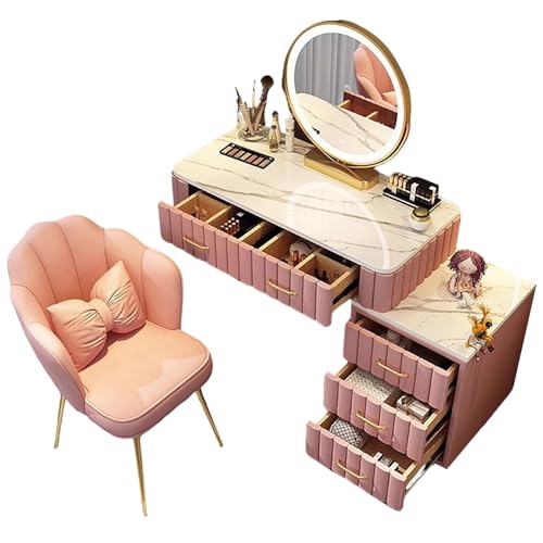 WWJKDSFY Vanity Desk with Drawers, with Mirror and Lights Dressing Table, Small Make Up Vanity Set with Visible Glass Desktop, for Bedroom