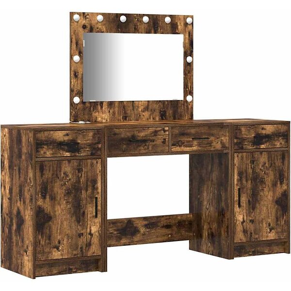 vidaXL Dressing Table with Mirror Lights 3 pcs Brown Engineered Wood