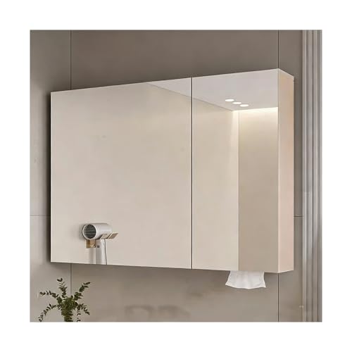 HUFIREHU Led Medicine Cabinet,Bathroom Mirror With Storage,With Soft-Close, Defogger, Adjustable Color Temperature, Stepless Dimming, Tempered Glass(Cream B,100 * 68 * 12cm)