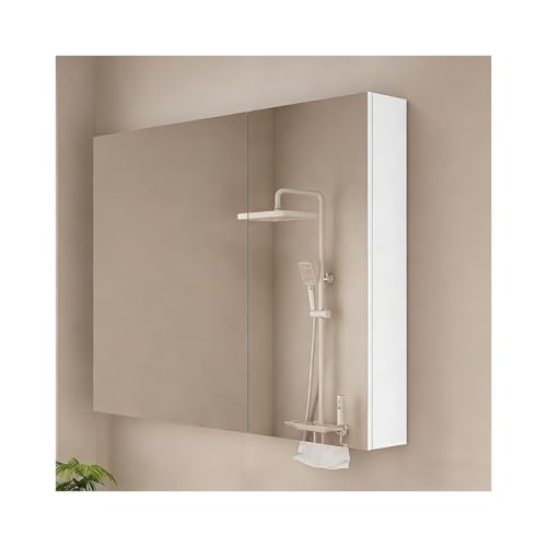 HUFIREHU Led Medicine Cabinet,Bathroom Mirror With Storage,With Soft-Close, Defogger, Adjustable Color Temperature, Stepless Dimming, Tempered Glass(White B,90 * 68 * 12cm)
