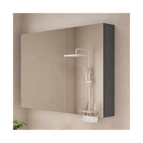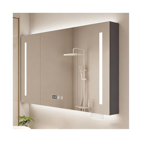 HUFIREHU Led Medicine Cabinet,Bathroom Mirror With Storage,With Soft-Close, Defogger, Adjustable Color Temperature, Stepless Dimming, Tempered Glass(Gray B,100 * 68 * 12cm)