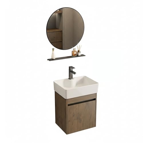YOWLLXOF Small Wall Mount corner bathroom vanity,with mirror, Storage Cabinet,multifunctional Design,Space-Saving,for Laundry Room,Bathroom, Guest Room(18.9 * 15in)