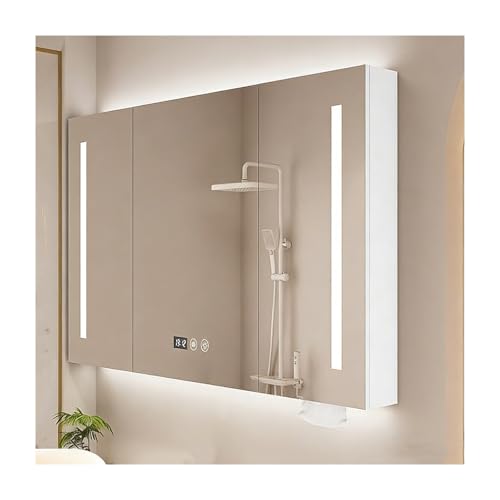 HUFIREHU Led Medicine Cabinet,Bathroom Mirror With Storage,With Soft-Close, Defogger, Adjustable Color Temperature, Stepless Dimming, Tempered Glass(White B,100 * 68 * 12cm)