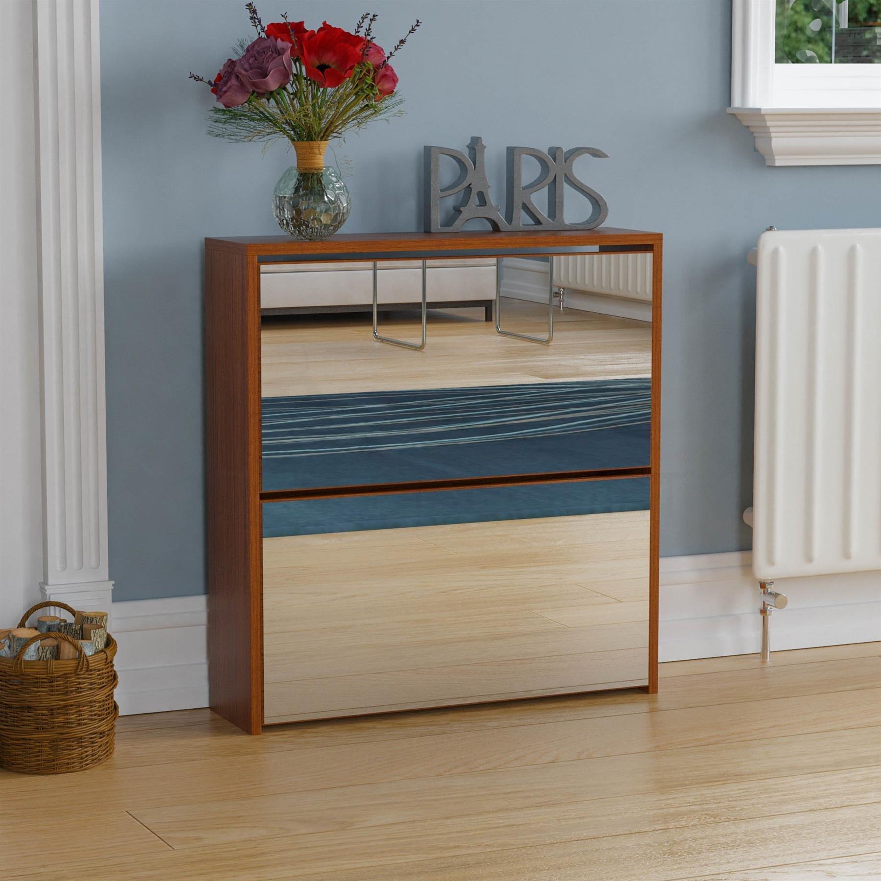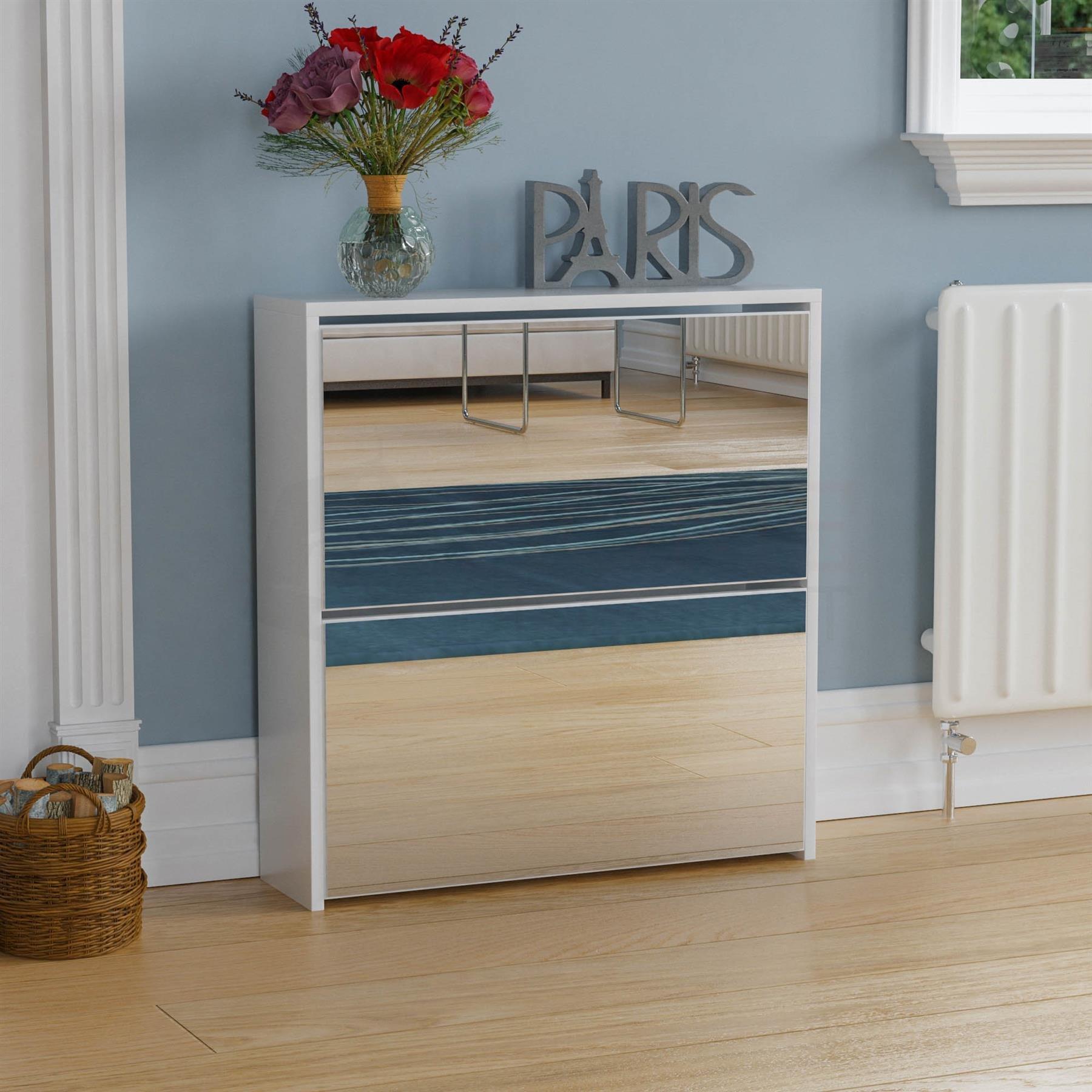 Vida Designs 2 Drawer Mirrored Shoe Cabinet Storage Organizer 660 x 625 x 165 mm
