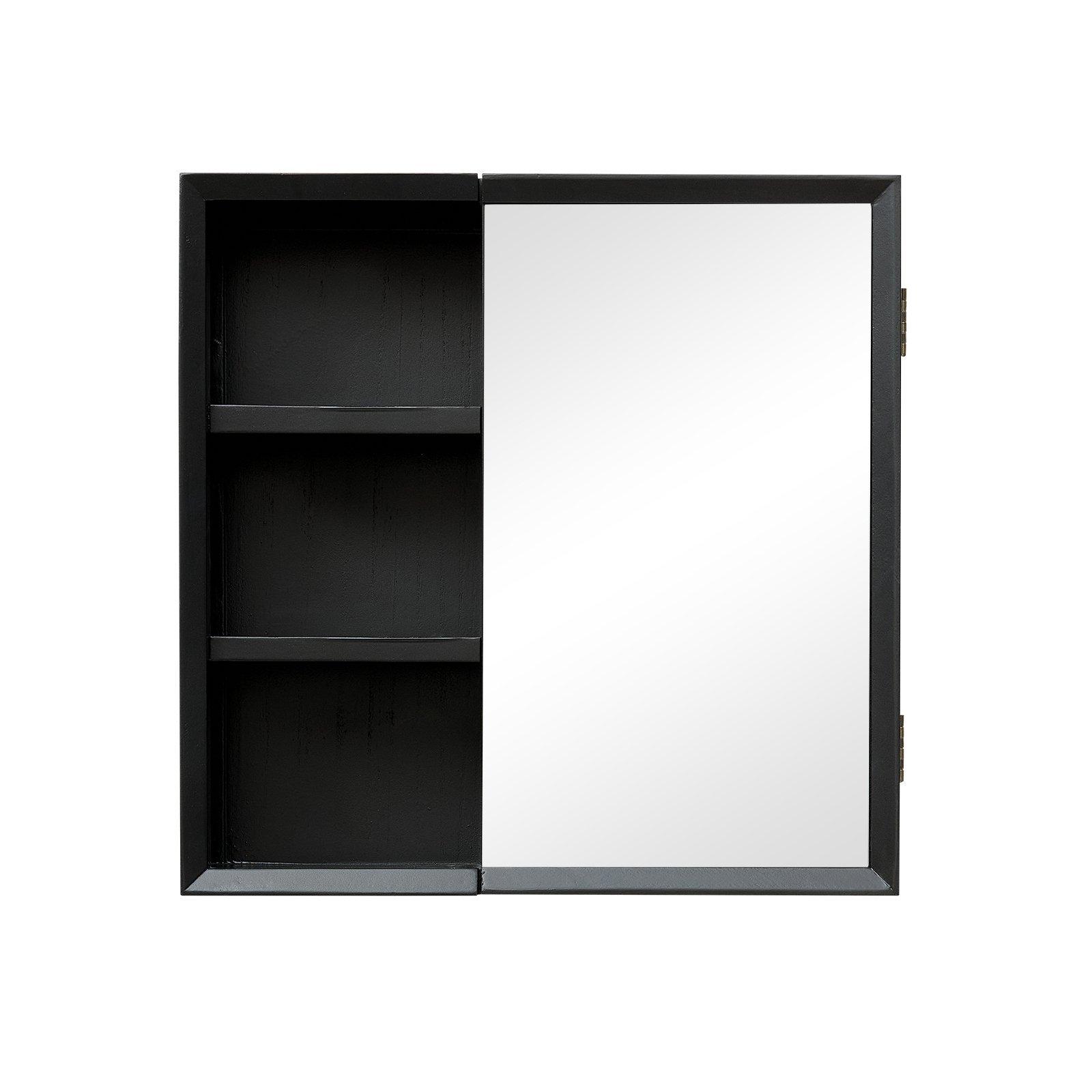Black Open Shelved Mirrored Wall Cabinet 53cm X 53cm