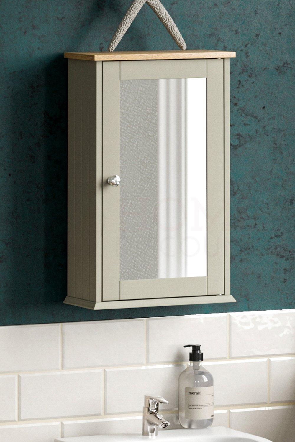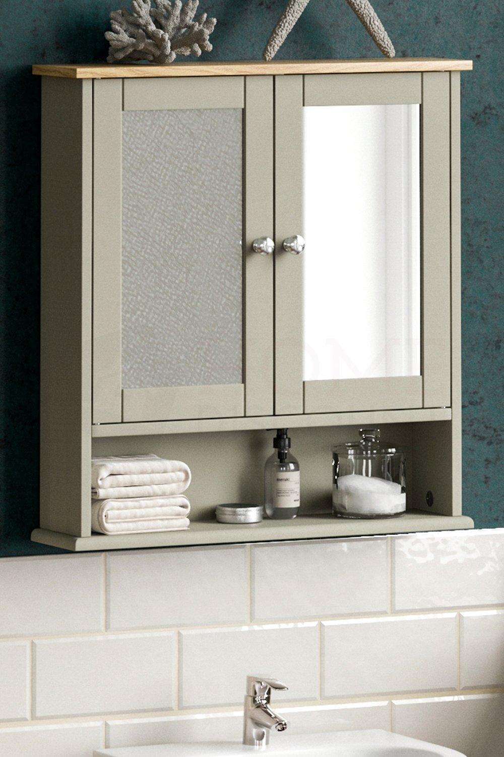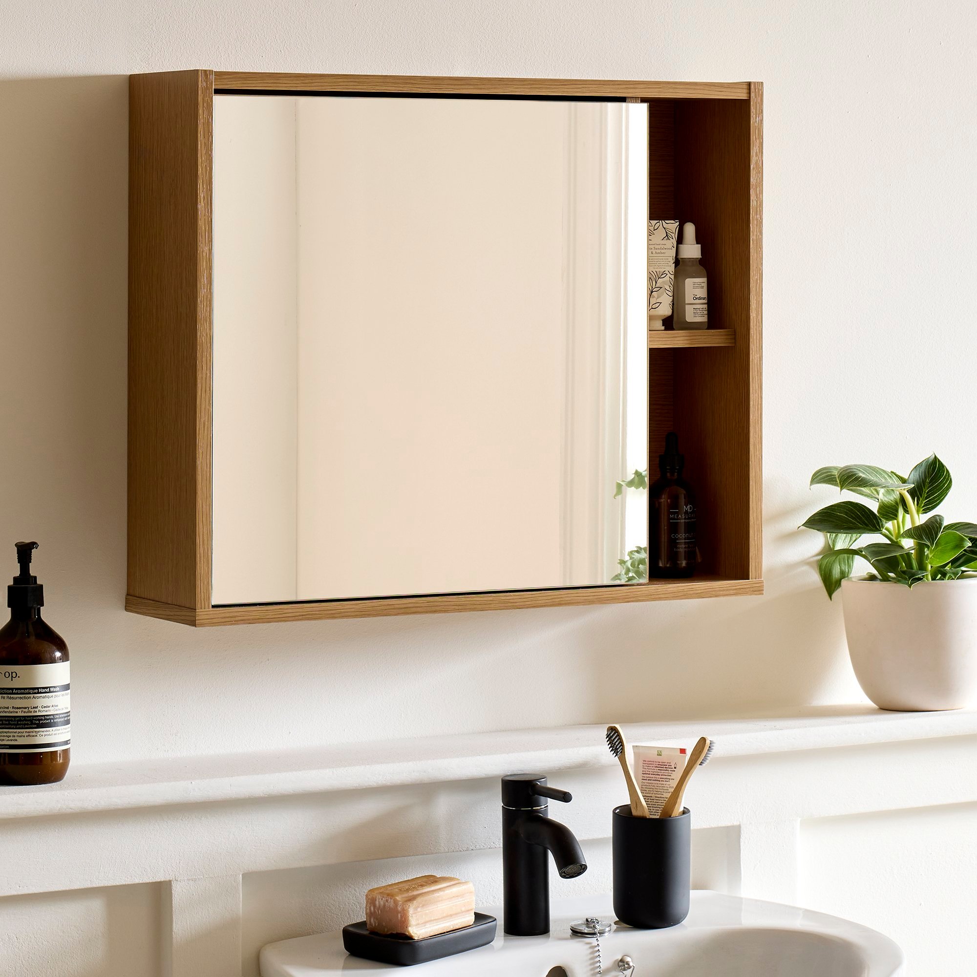 Russell Wooden Bathroom Wall Mirrored Medicine Cabinet Salt Oak