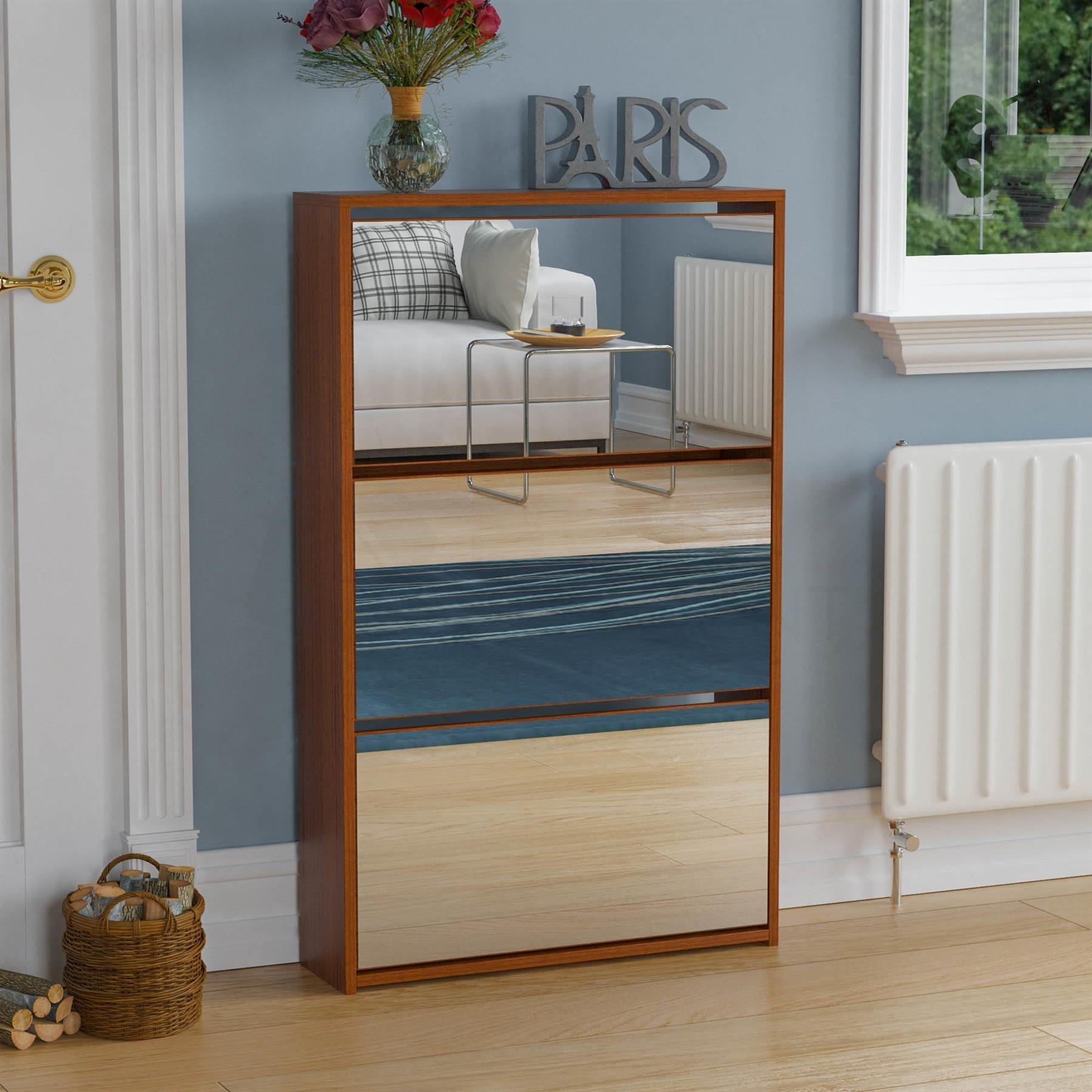 Vida Designs 3 Drawer Mirrored Shoe Cabinet Storage Organizer 1000 x 625 x 165 mm