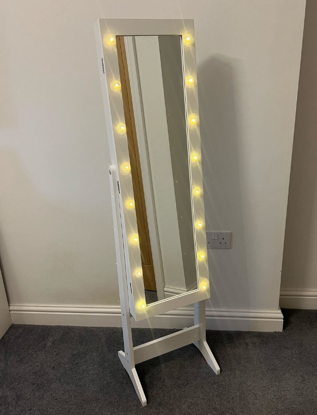 Free Standing LED Mirrored Jewelry Cabinet Armoire Floor Organiser