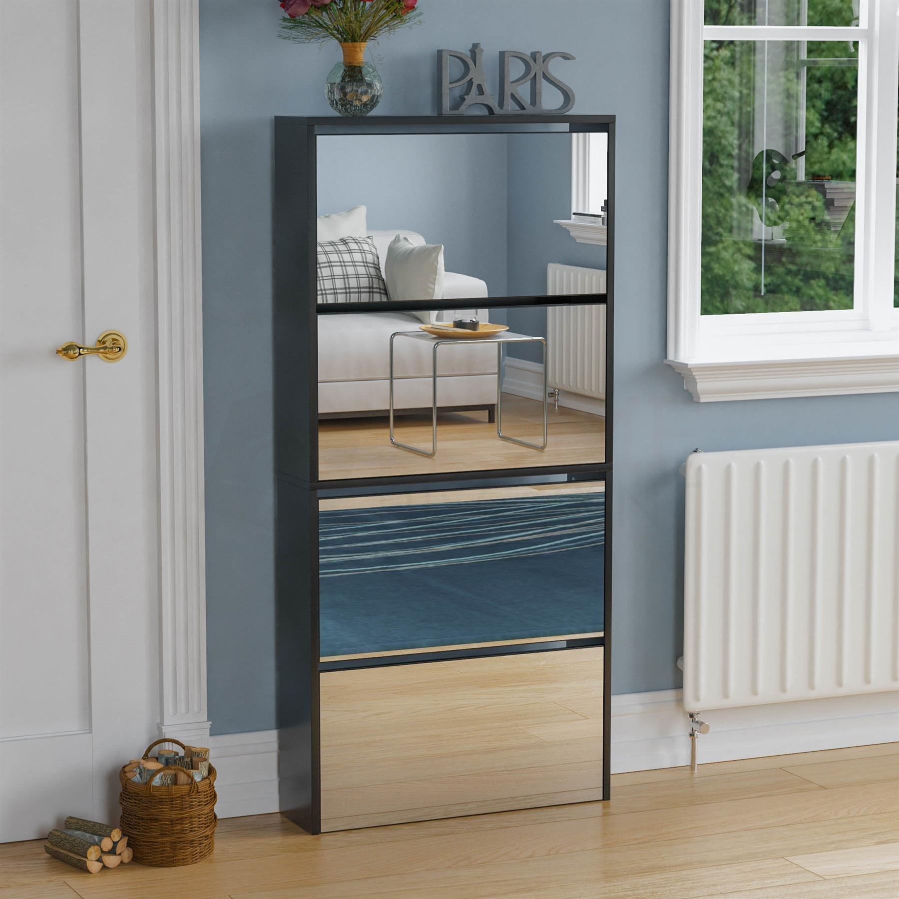 Vida Designs 4 Drawer Mirrored Shoe Cabinet Storage Organizer 1340 x 620 x 165 mm