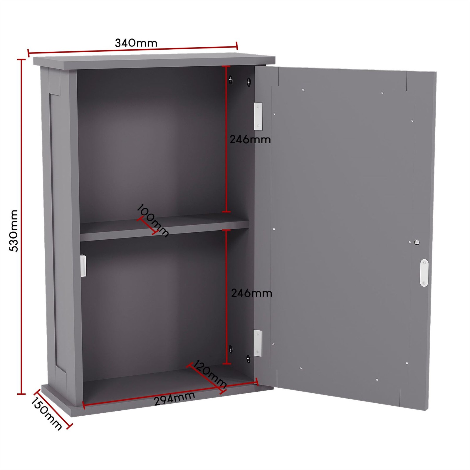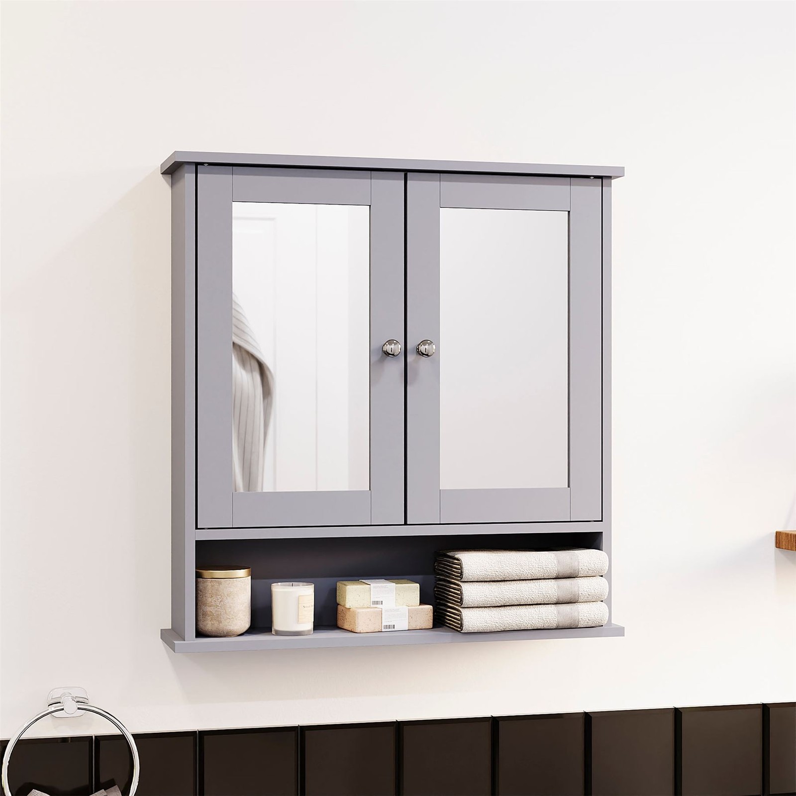 Bathroom Mirrored Wall Cabinet Storage 2 Mirrored Door Bathroom Furniture Grey