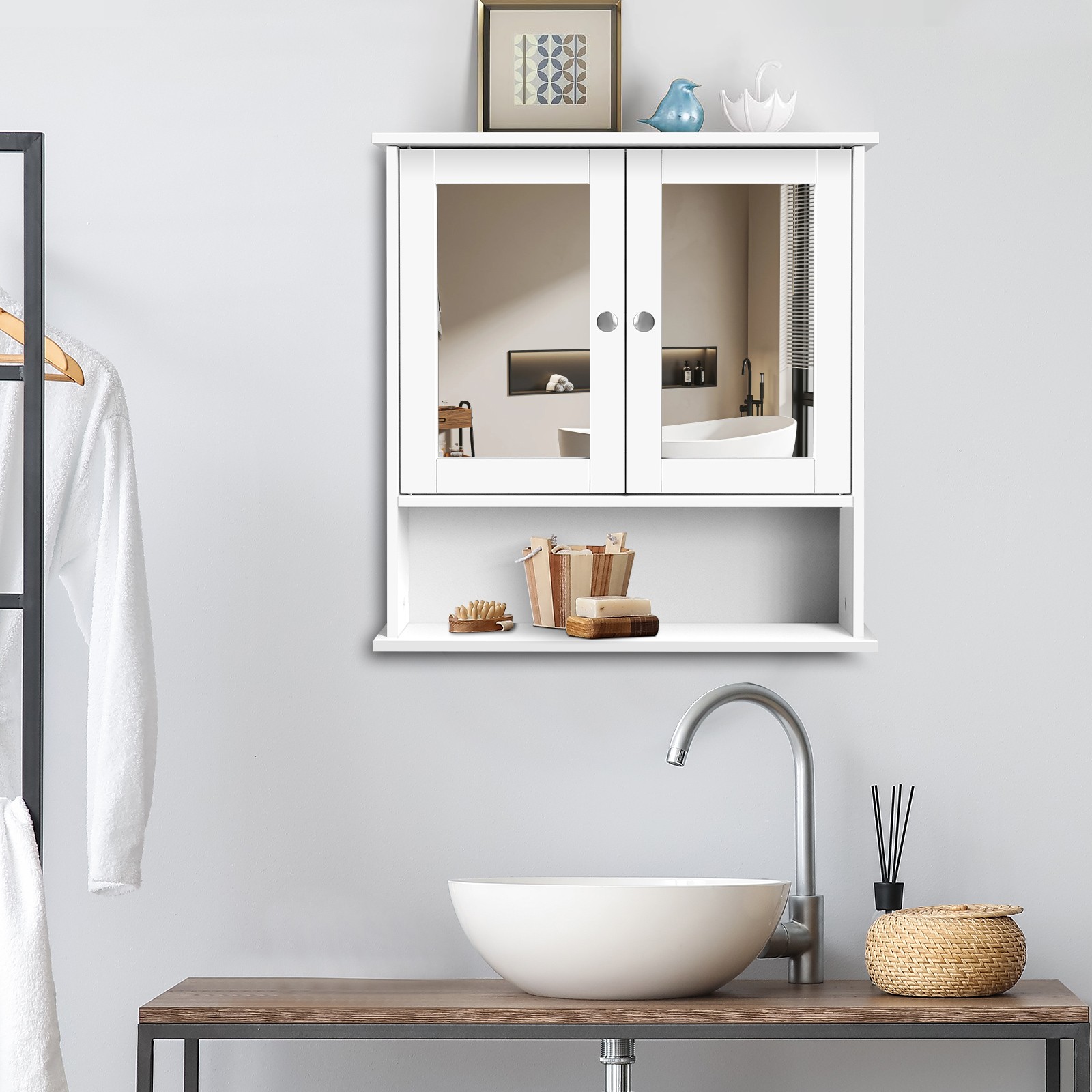 Bathroom Mirrored Wall Cabinet Storage 2 Mirrored Door Bathroom Furniture White