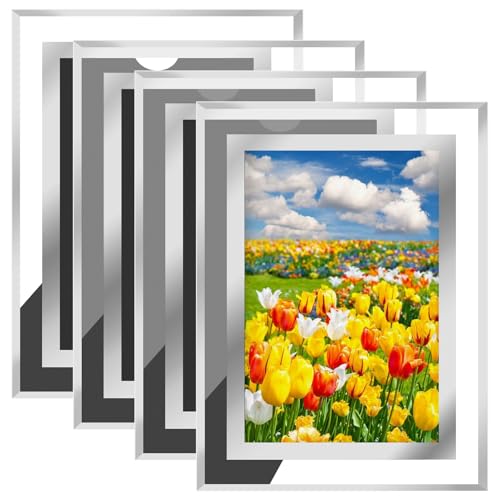 4Pack Picture Frames 6x4, Glass Photo Frames Silver Mirrored Glass Frame Pictur