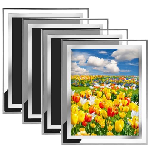ASelected 4 Pack 8x10 Photo Frames,Silver Mirrored Glass Picture Frames Set of 4,Glass Photo Frame for Wedding Photos, Family Photos for Tabletop Display and Home Decoration