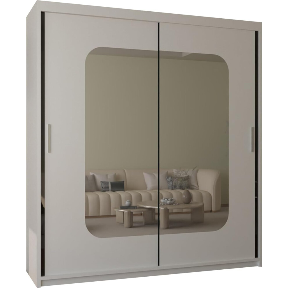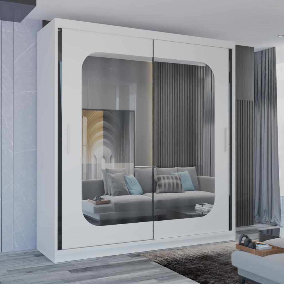 (203, White) Houston Double Sliding Mirrored Wardrobe Cabinet
