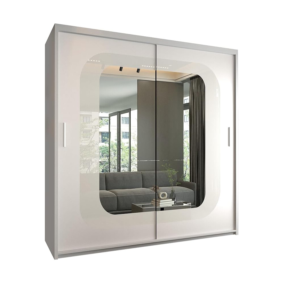 Venice 203cm White High Gloss Mirrored Sliding Door Wardrobe, Stylish Bedroom Storage (White, 203)