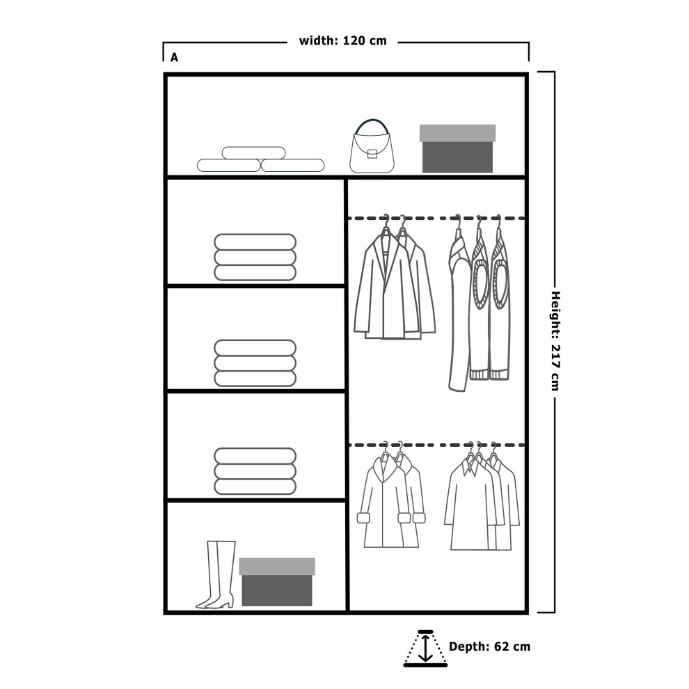 Arthauss Modern Bedroom Mirrored Sliding Door Wardrobe Arti 6 in White Matt 120cm - Flat Pack, Perfect for Space-Saving, With Customisable Interior