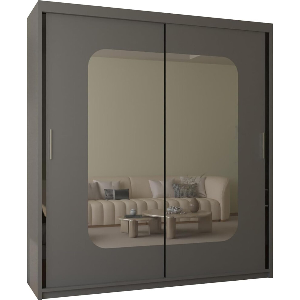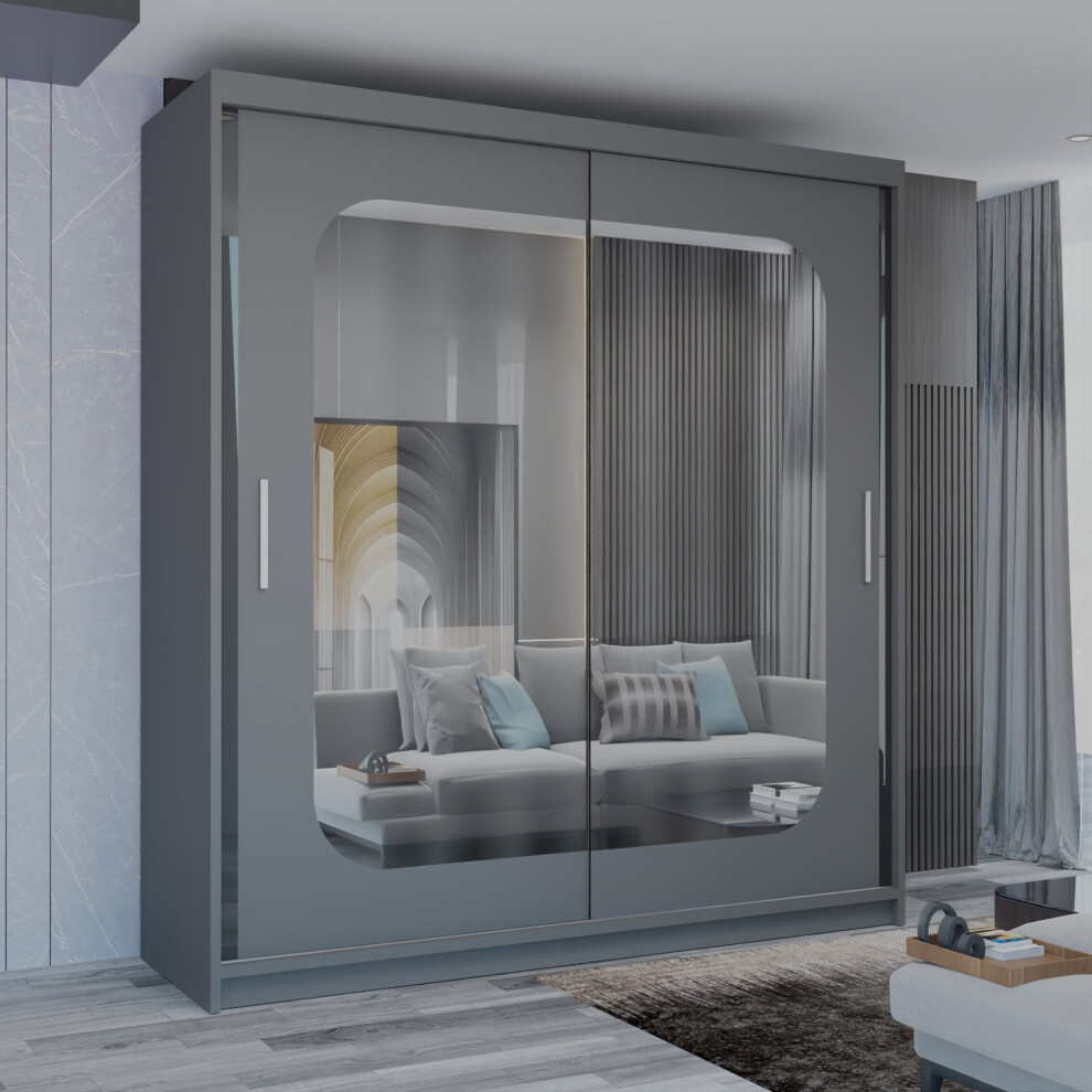 Arthauss Modern Bedroom Mirrored Sliding Door Wardrobe Arti 3 in Grey 181cm - Elegant Flat Pack Wardrobe with Sliding Doors, Spacious Storage with Adjustable Interior