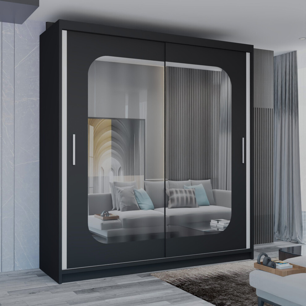 (203, Black) Houston Double Sliding Mirrored Wardrobe Cabinet