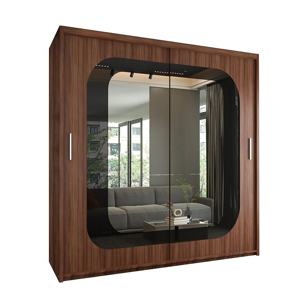 (203, Walnut) Houston Double Sliding Mirrored Wardrobe Cabinet