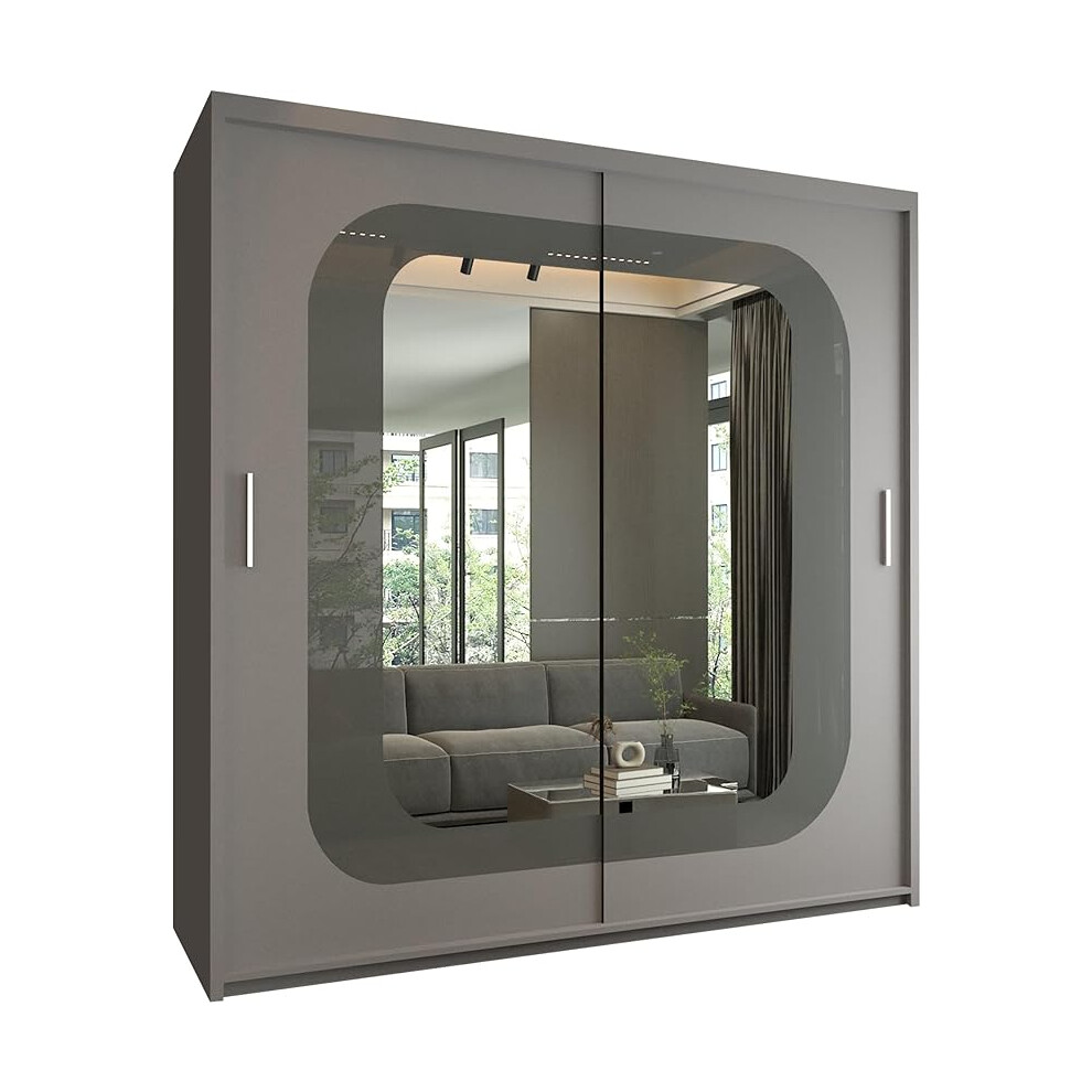 FHI-DUBAI Mirrored Sliding Door Wardrobe with Full Mirror | Modern Bedroom Storage | Multiple Sizes & Colours | Optional LED & Assembly (Grey, 203cm)