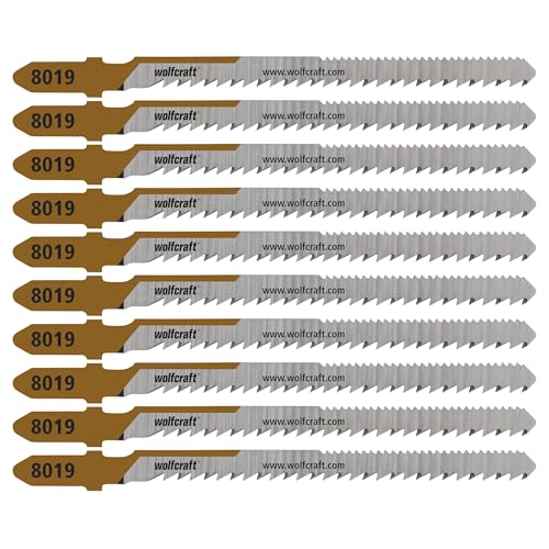 wolfcraft 10 Jigsaw Blade - Fine Curved Cuts, Mirrow-Cut - HCS Blade with T-Shank – Ideal for Hardwood and softwood - Cutting Depth 50mm - 8019100