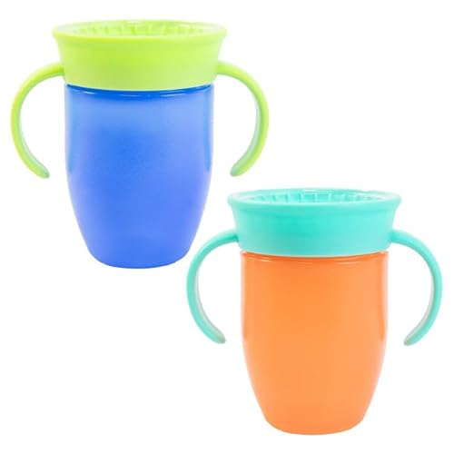 Nuby All Around Water Bottle with Handle - No Spill Sippy Cup | 210ml / 7oz | Drink from Any Angle | Dishwasher Safe | BPA Free | Suitable Beaker for 4 Months Plus (Pack of 2, Blue/Orange)