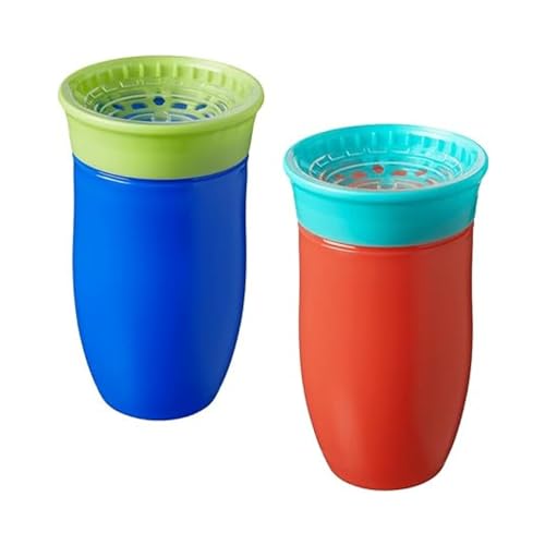 Nuby All Around Water Bottle - No Spill Sippy Cup | 300ml / 10oz | Drink from Any Angle | Dishwasher Safe | BPA Free | Suitable Beaker for 6 Months Plus (Pack of 2, Blue/Orange)