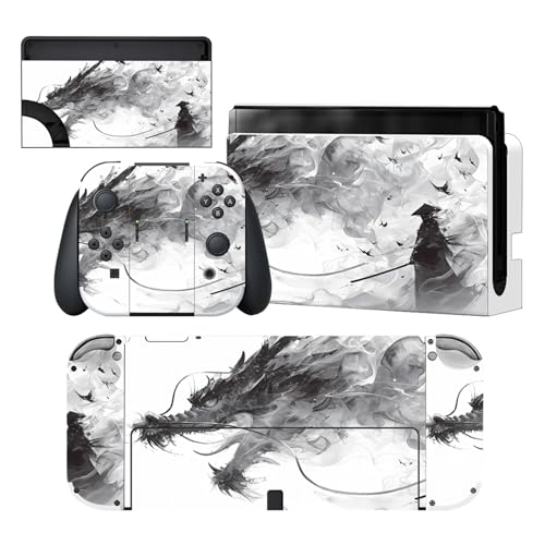 playvital Full Set Protective Stickers for Nintendo Switch OLED Model, Customized Vinyl Decal Skins for Switch OLED Console & Joycon & Dock & Grip - Mistborn Dragon
