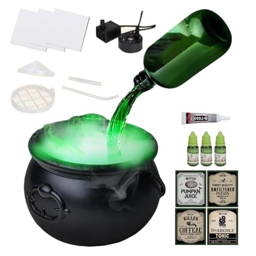 Qfdiwr 1 Set Halloween Witch Cauldron 19.5 x 19.5 cm Halloween Cauldron Decoration with Floating Potion Bottle and Misters for Halloween Parties, Scary Decoration