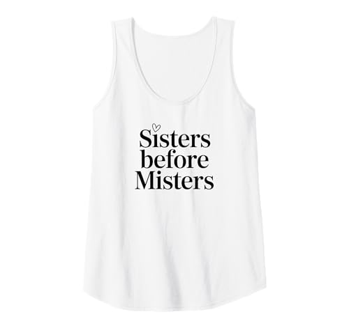 Womens Cute “Sisters Before Misters” Friendship Saying Best Friends Tank Top
