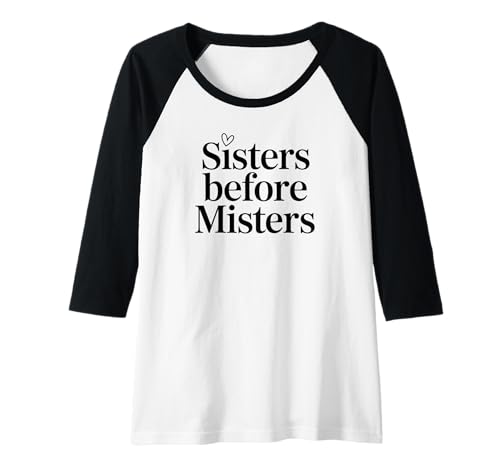 Womens Cute “Sisters Before Misters” Friendship Saying Best Friends Raglan Baseball Tee