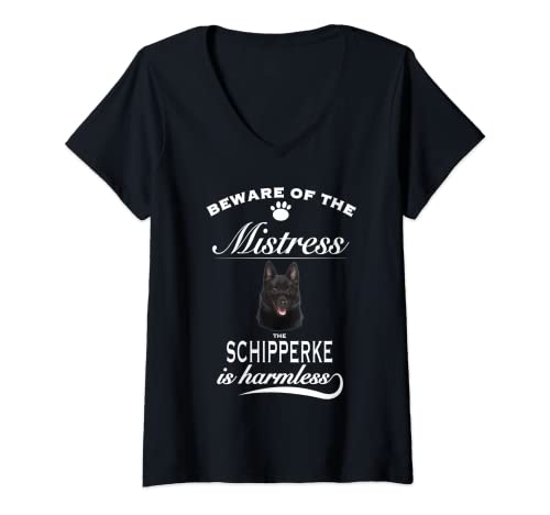 Womens Schipperke T-Shirts - beware of the mistress - Schipperke V-Neck T-Shirt