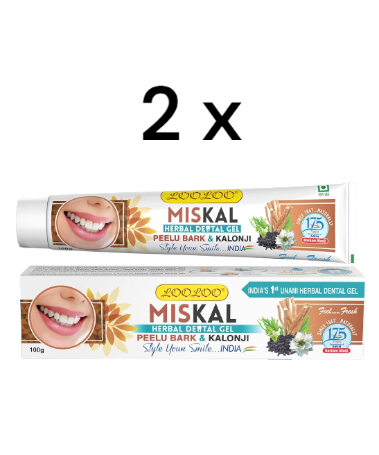 Miskal x2 Herbal Dental Gel Peelu Bark & Kalonji 100g Miswak Toothpaste
