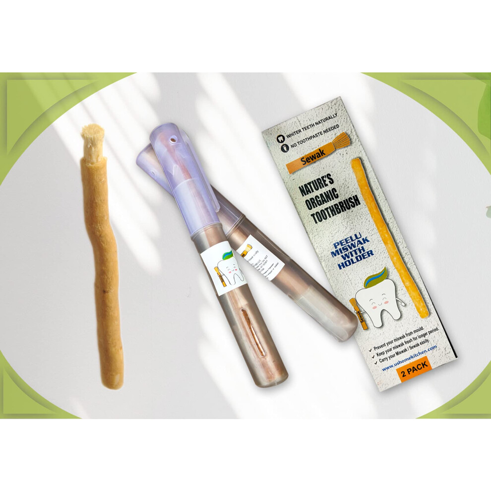 Miswak Stick | SEWAK Natural Toothbrush Sticks | Chewable for Teeth Cleaning | Siwak | Meswak | Salvadora Persica Stick | with Holder (2 Units)