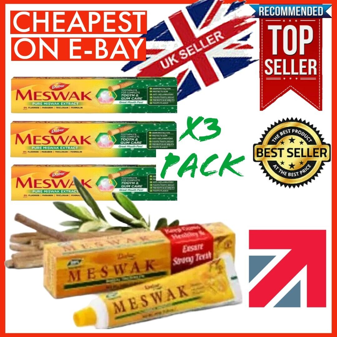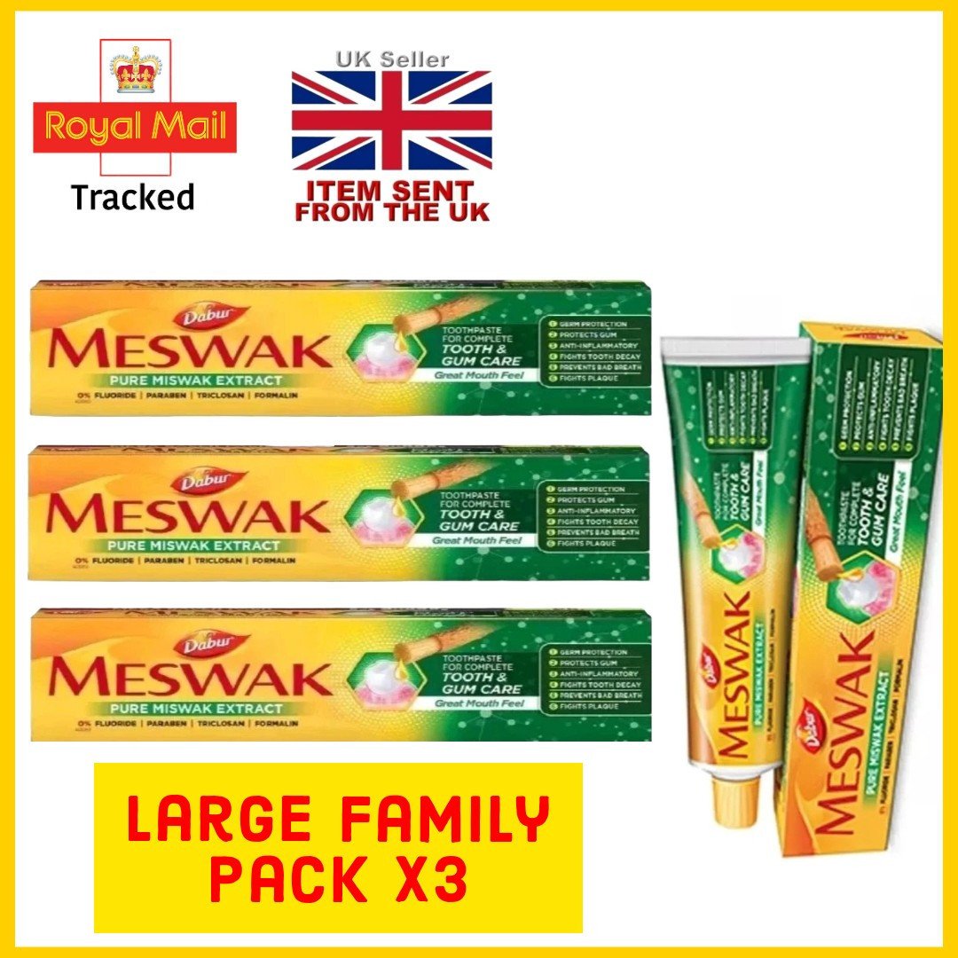3 x 100ml Dabur Miswak Meswak Siwak Natural Herbal Halal Islamic Toothpaste