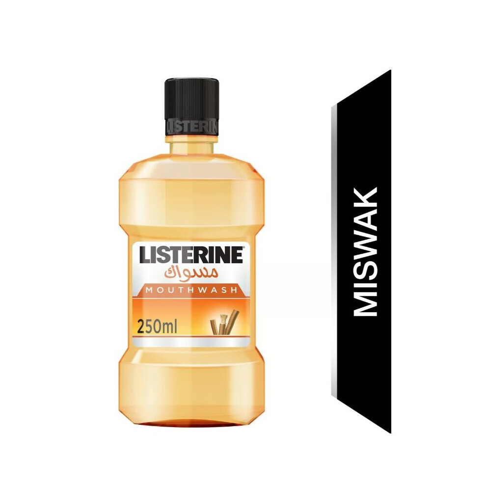 Listerine Miswak Mouthwash 250ml - Fights germs, long-lasting fresh breath, strengthens teeth, reduces plaque, alcohol-free